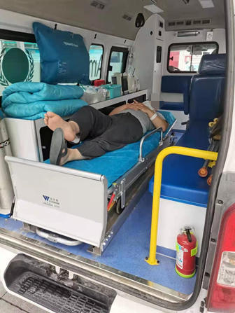 12点10分,交接完毕。医护人员为客户做转运前评估,客户情况平稳,转运正式开始。 医护人员一路监测客户主要身体指标,整个行程中客户身体情况平稳,精神状态良好。