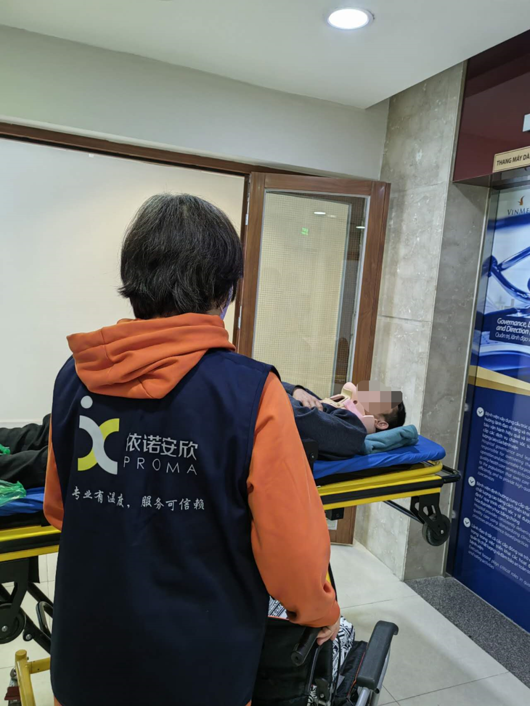 2023年1月11日,企业告知根据当地规定,越德医院作为公立医院无法让客户康复期继续住院,同时企业告知当地工作地或员工住处也无照护条件。我司紧急安排转院,并于同日下午成功将客户转运至Vinmec Times City Hospital急诊科。