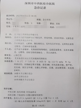 14:52,PROMA案件小组与客户家属取得联系,获悉客户于4月9日与家属从银川出发去往珠三角及香港旅游,今早不慎摔倒受伤,已在深圳市中西医结合医院急诊就诊,初步诊断为:损伤疼痛-外伤血瘀证、下肢损伤(右髋右膝钝性挫伤)、右髌上囊积液。目前客户生命体征稳定,行动能力受限。客户在家属的陪同下已回酒店修整,希望尽快送返回居住地银川继续治疗。