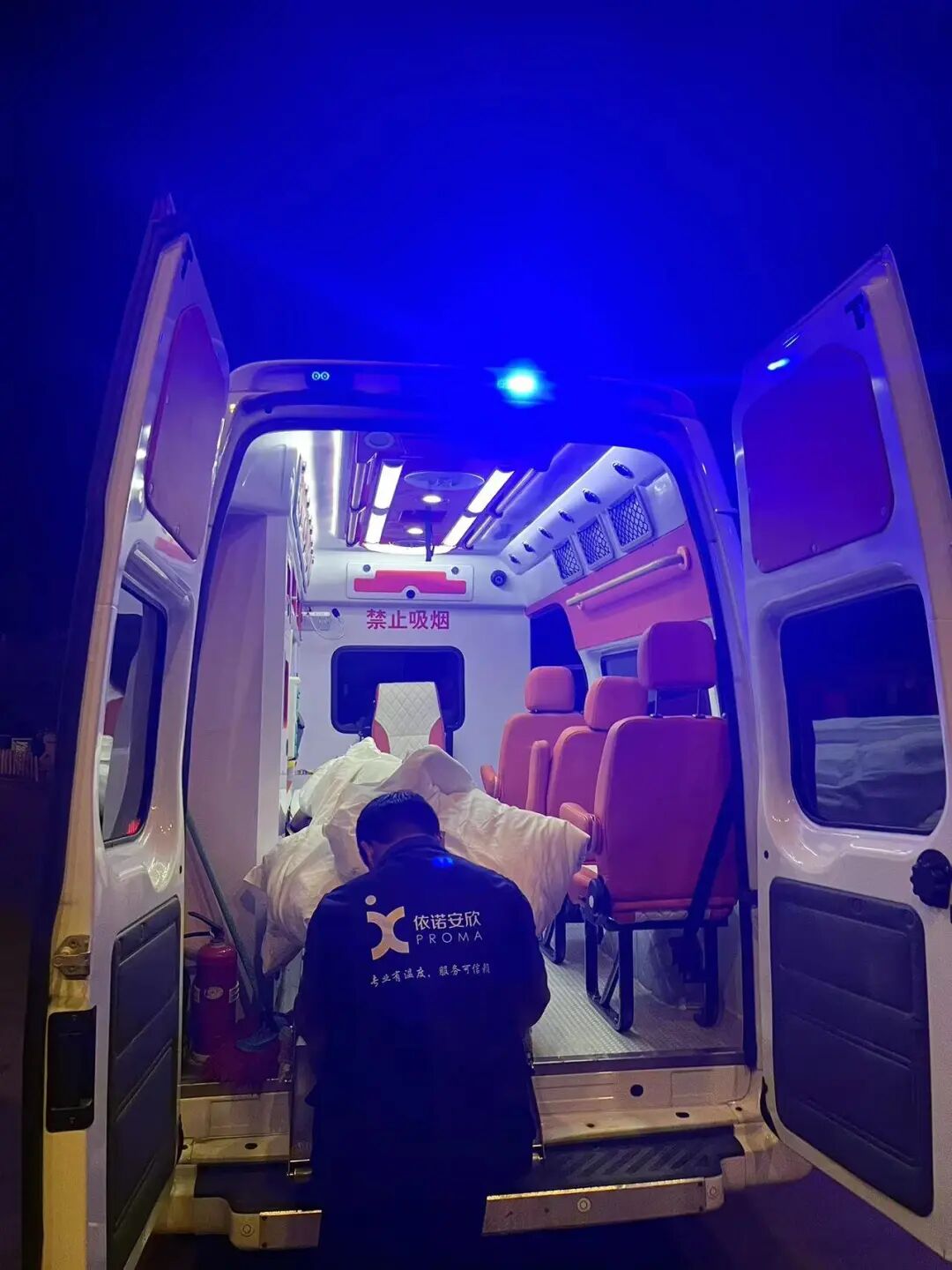 23:32,PROMA医疗小组结合医疗报告,评估客户病情,并紧急制定了相应送返方案(民航商务舱+救护车+转运医生陪同)。