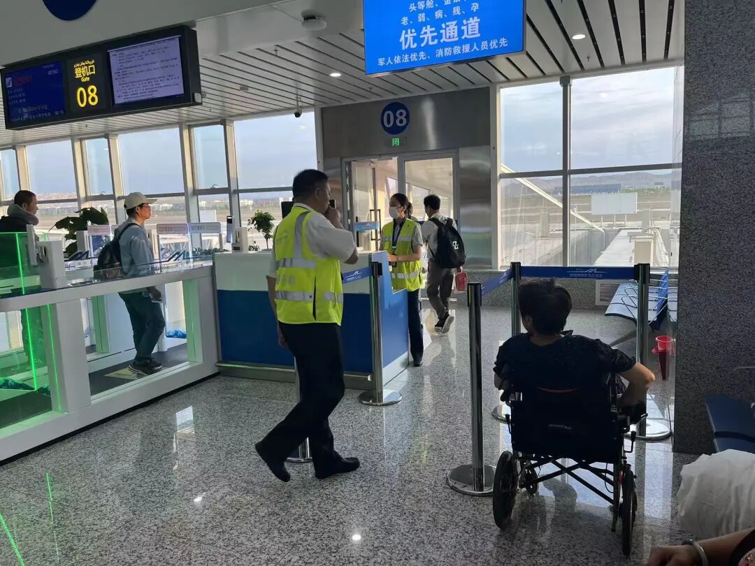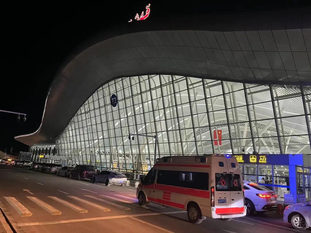 6:40,救护车顺利抵达喀什机场,办理乘机手续,经安检后进入商务舱休息室休息,等待登机