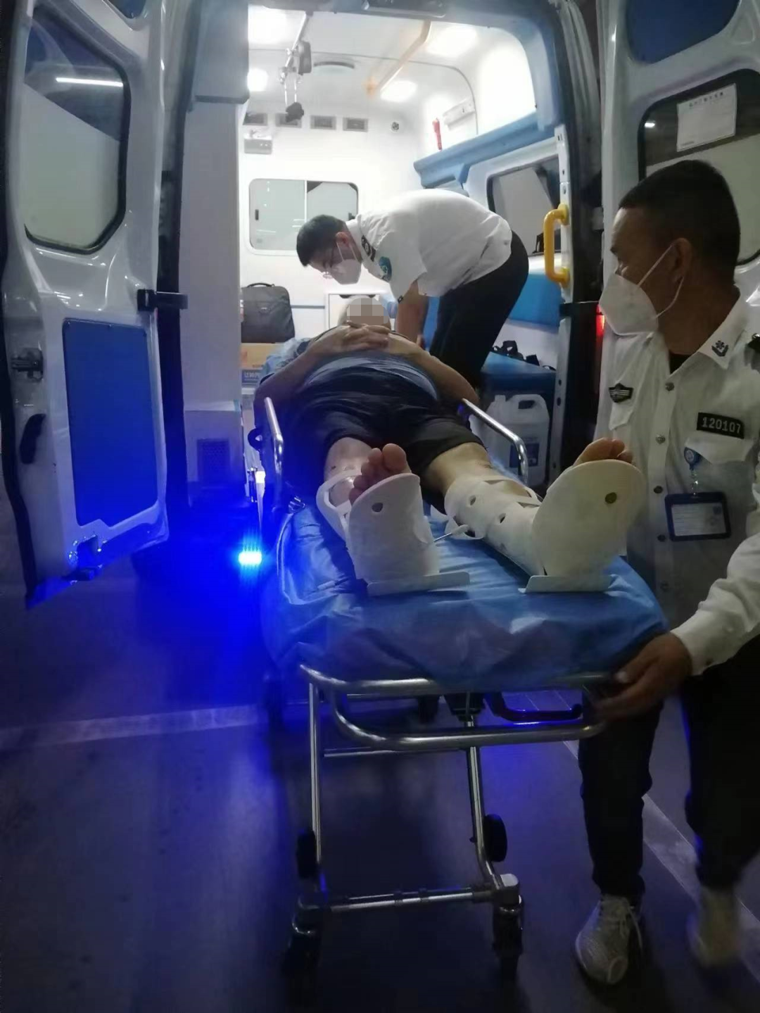 2023/7/4 0:20 陪同医生转移客户到救护车,将前往上海新华医院