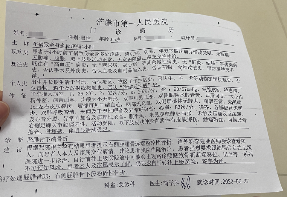 另外,格尔木医院为当地三级医院,具备手术及治疗能力,主治医生亦已与伤者家属解释说明,但家属对此仍有顾虑,已自行联系邀请上海长海医院骨科白主任团队来格尔木人民医院为其家人实施手术,格尔木人民医院对此并不反对,具体手术时间仍在协调中。